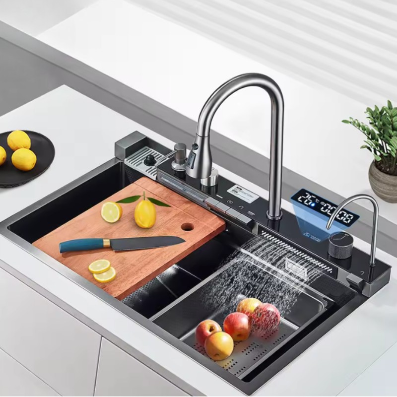 Acero inoxidable 304 engrosado 3 mm: material acero nano-inoxidable engrosado seleccionado, panel grande engrosado 3 mm aumenta la capacidad de carga del fregadero, no es fácil de deformar y más duradero Capa, sin miedo a los diversos Desafíos de la vida, sin. manchas de aceite, sin manchas, todo tipo de manchas de aceite se pueden lavar fácilmente.