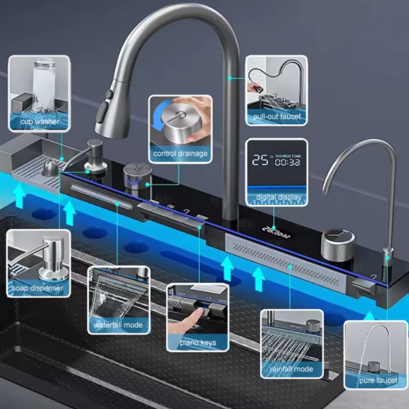 Nuestro fregadero sencillo y elegante adecuado para cualquier tipo de cocina y baño Tiene mucho espacio y es perfecto para una familia numerosa. Puede ayudarle a limpiar utensilios de cocina, verduras y frutas, y esuna gran adición a la cocina.