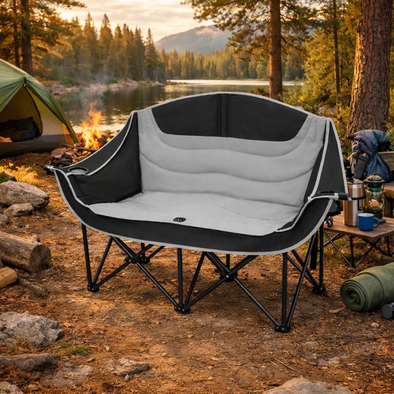 Disfruta de la comodidad al aire libre con esta silla doble plegable, ideal para camping, picnic o eventos al aire libre. Su diseño resistente y práctico permite transportarla fácilmente gracias al bolso incluido.